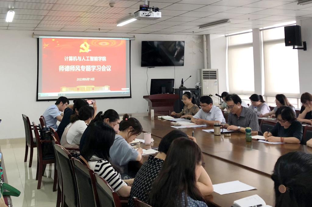本网讯 6月14日下午,为深入学习贯彻习近平新时代中国特色社会主义思想和党的二十大精神,落实立德树人根本任务,加强和改进学院师德师风建设,永利集团304am登录在行知楼1302室召开师德师风专题学习暨研讨活动,学院党政班子成员、全体教师参会,会议由党委书记王祥主持。
