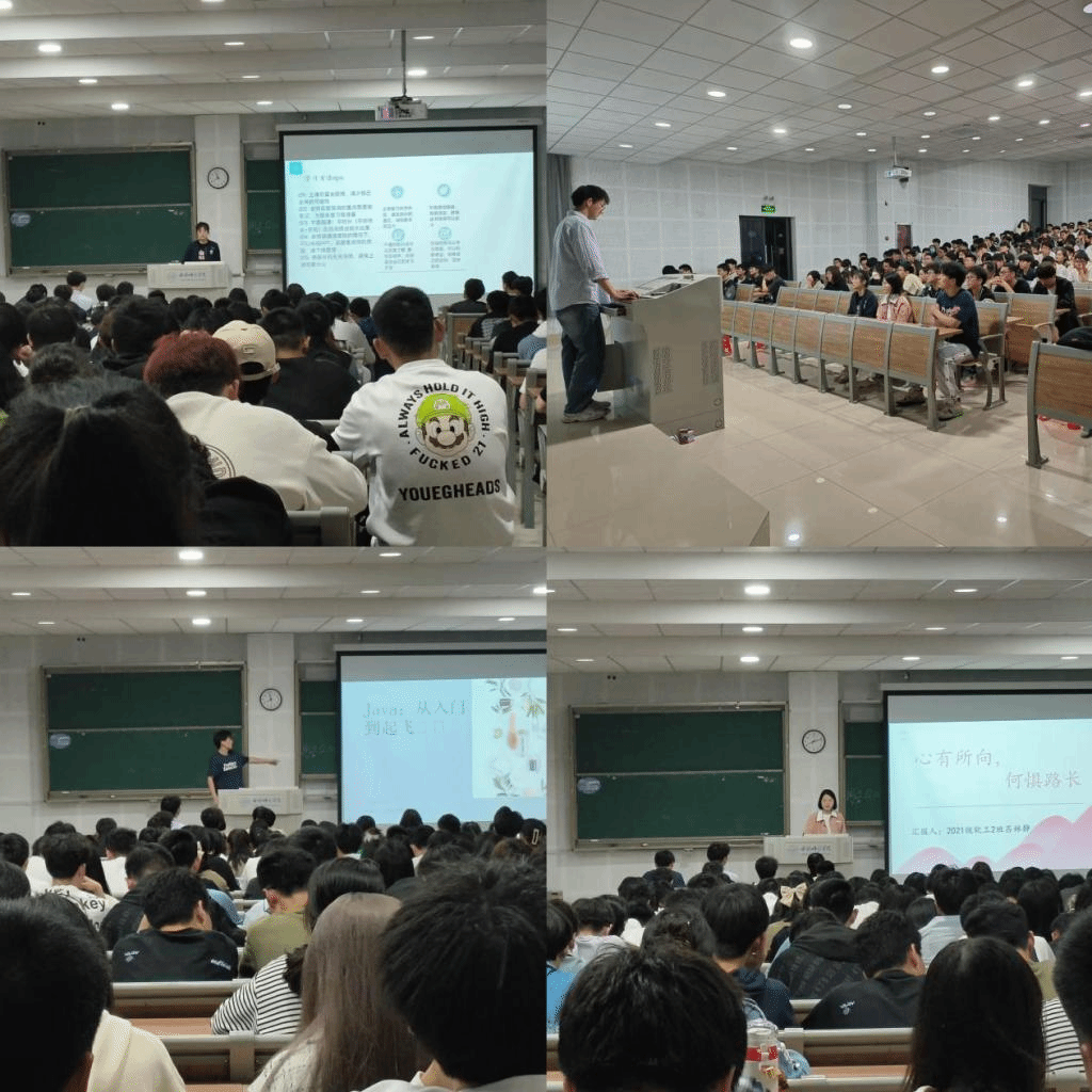 王锐同学从专业课程入手,建议精通一门编程语言,多去尝试并找到自己想学习并可以一直运用的编程语言,以Java为例,从入门到进阶,构建框架,为自己专业课打好基础。吕林静同学以“心有所向,何惧路长”为主题分享学习经验,认为学习离不开兴趣,努力和方法三个部分,大学要学会自主学习,合理运用网络学习资源查漏补缺。
