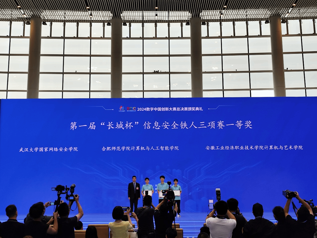 第七届数字中国建设峰会5月24日在福建省福州市开幕,中共中央政治局常委、国务院副总理丁薛祥出席开幕式并发表主旨讲话。作为数字中国建设峰会的重要赛事,第一届“长城杯”信息安全铁人三项赛决赛得到国家数据局、福州市委、市政府的大力支持,在峰会期间成功举办。本次大赛以“网络智能防御,开启数字安全新时代”为主题,旨在打造高校网络安全权威赛事,聚焦培养卓越网络安全专业人才,促进网络安全产业持续发展。大赛展现了一场智力与技术的巅峰对决,来自86所高校400余名师生会师决赛。永利集团304am登录代表队经过初赛和半决赛的层层筛选,参加了本次总决赛。