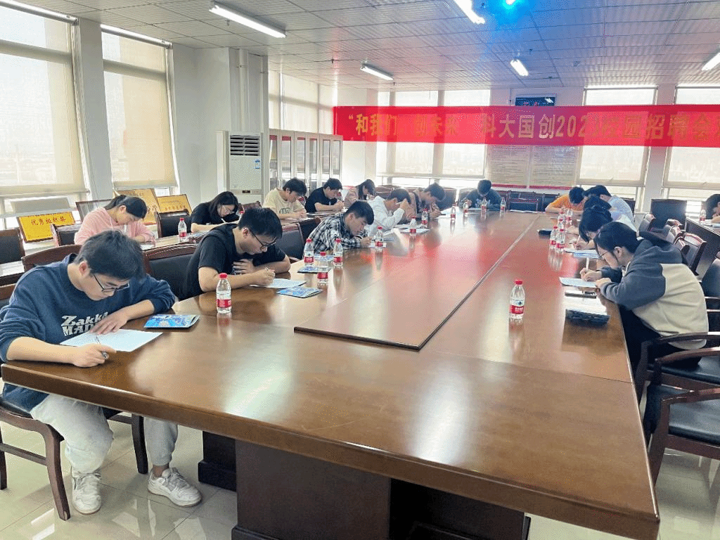 首先,科大国创人力资源负责人播放了公司的宣传片,介绍了公司的发展战略规划、规章规程、企业文化、招聘职位和福利待遇等方面的内容。然后,毕业生在薪资薪酬、晋升体系等进行提问,招聘负责人针对学生所提出的问题进行了解答和交流。最后,科大国创为参会毕业生举办了现场笔试和面试。